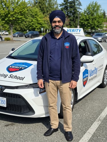 Verity Driving School offers ICBC-licensed driver training in Surrey, BC, specializing in Class 4, 5, and 7 instruction for safe, confident road readiness.